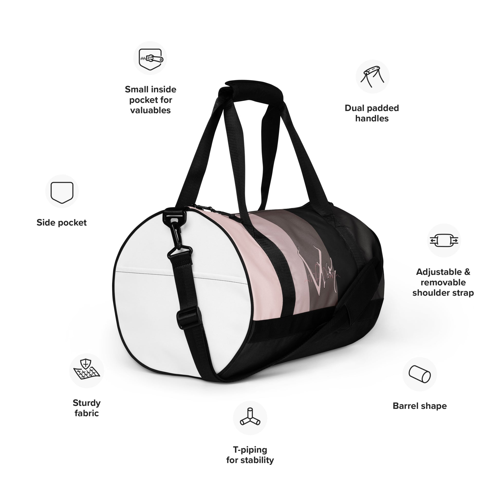Ready to get your fitness on? Add some punch to pumping iron with this all-over print gym bag. Made from 100% polyester and sturdy, water-resistant fabric, this bag is fun meets function. And it’s got pockets!