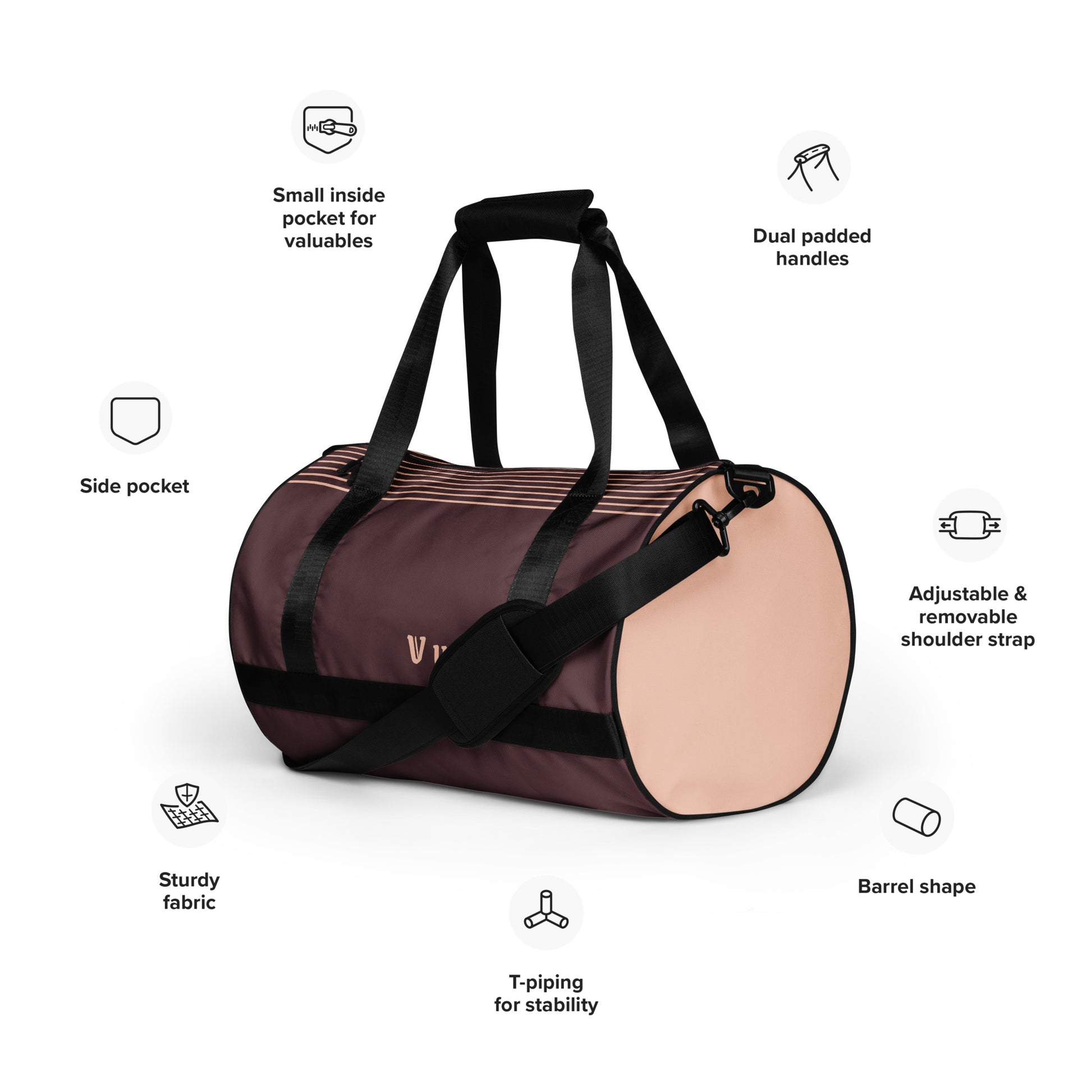 Ready to get your fitness on? Add some punch to pumping iron with this all-over print gym bag. Made from 100% polyester and sturdy, water-resistant fabric, this bag is fun meets function. And it’s got pockets!